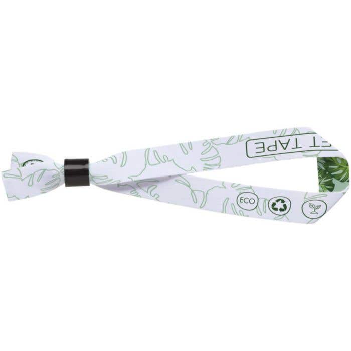 Ce bracelet écologique est idéal pour vos festivals et événements ! Le bracelet en PET recyclé est doté d'un fermoir de sécurité en RPET assorti. Ce bracelet en polyester recyclé peut être imprimé en quadrichromie selon vos souhaits, tant au recto qu'au verso. La fermeture unidirectionnel en RPET empêche de détacher le bracelet sans l'endommager. Il s'agit donc d'un article idéal pour le contrôle d'accès lors d'événements et de festivals. Remarque : le recto et le verso ne sont pas alignés en standard. Un supplément est facturé pour un logo aligné.