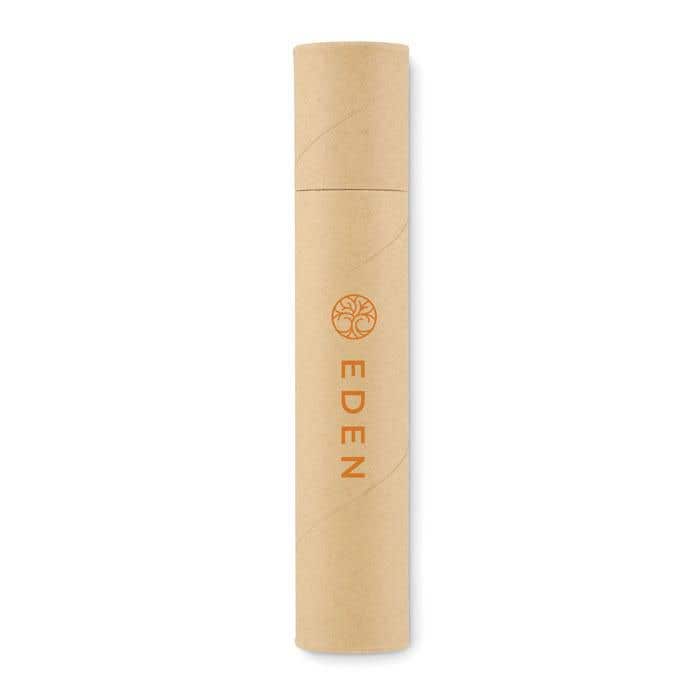 Set de bureau en carton composé d'un tube en papier recyclé, 2 crayons, 1 stylo à bille en carton, 1 taille-crayon en bois et 1 gomme.