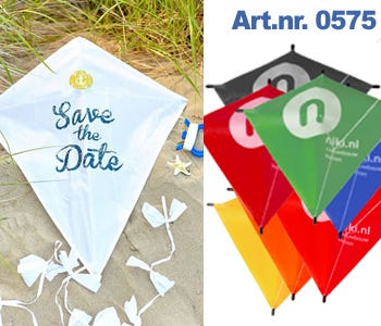 Met bedrukte vlieger heeft u zonder twijfel een origineel huwelijkscadeau in handen. Extra leuk om uit te delen tijdens een strandbruiloft.
