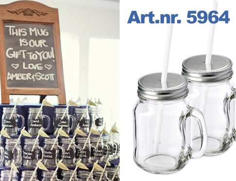Met de mason jar kunt u al uw gasten verfrissen met een eigen ‘signature drink’ in een gepersonaliseerde glas. Bovendien is de mason jar trendy en helemaal van nu.
