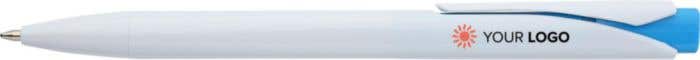 De pen is verkrijgbaar in verschillende kleuren voor de pushknop, wat zorgt voor een speelse en moderne uitstraling. Je kunt hiermee aansluiten bij je huisstijl of juist kiezen voor een kleur die opvalt. De witte body biedt een neutrale basis waarop je logo mooi tot zijn recht komt. De pushknop is niet alleen functioneel, maar ook een opvallend designelement dat deze pen onderscheidt van standaard pennen.