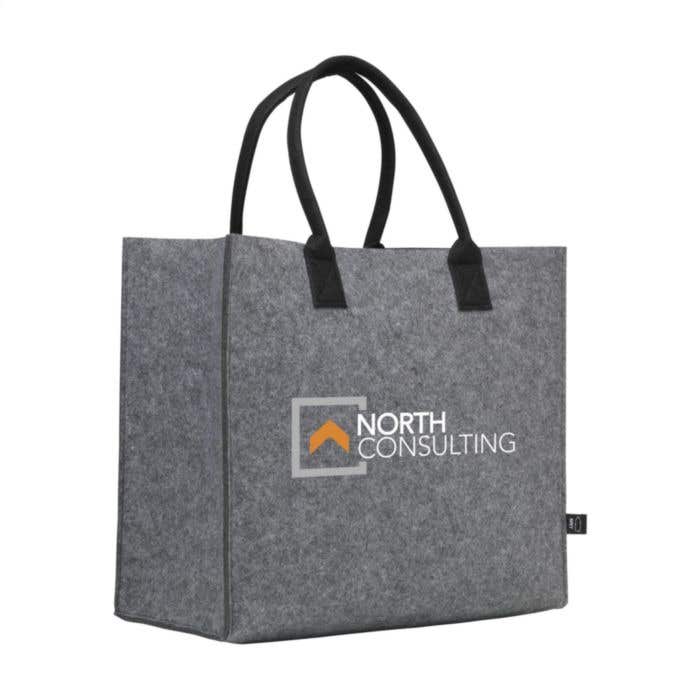 Deze ruime winkeltas van gerecycleerd RPET vilt kun je laten bedrukken met je logo en is gemaakt van stevig 2 mm materiaal. Met een inhoud van 28 liter biedt de tas enorm veel ruimte voor boodschappen, documenten of andere spullen. De dubbel genaaide draaglussen zorgen voor extra stevigheid en liggen comfortabel in de hand. Daarmee is deze tas een praktische keuze voor dagelijks gebruik en een waardevolle metgezel voor je relaties.